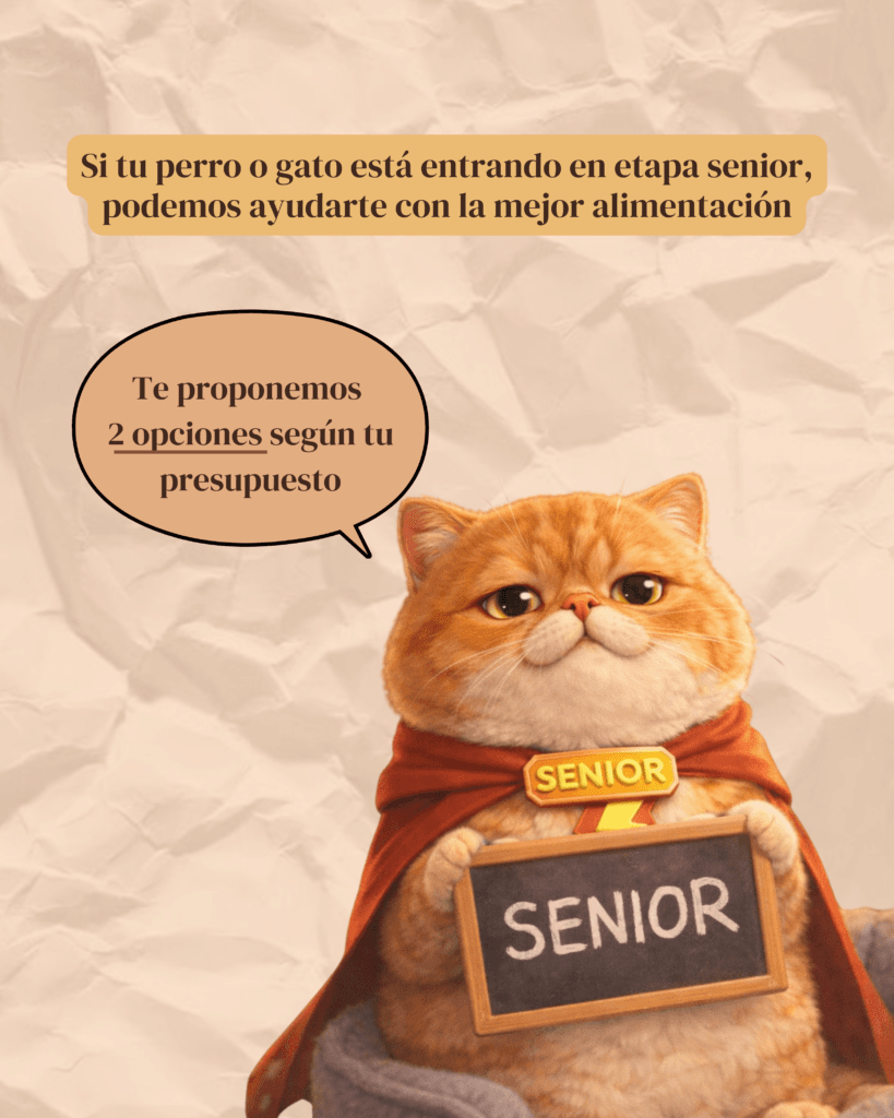 Si tu perro o gato está entrando en fase senior y no sabes qué opción puede encajar mejor, podemos ayudarte a encontrar la alimentación más adecuada según su edad, necesidades y presupuesto.