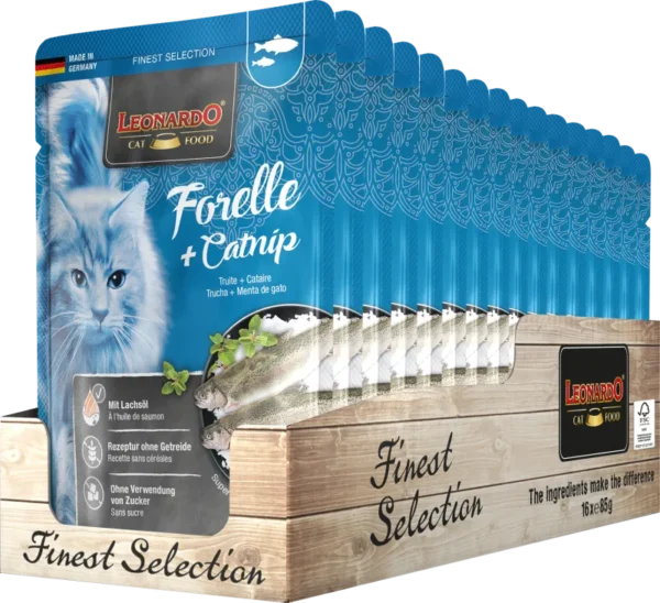 Los gatos son animales muy sensibles al aroma y la textura de sus alimentos. Por ello, LEONARDO Finest Selection Conejo + Cranberries está formulado para estimular sus sentidos desde el primer momento. El aroma natural del conejo, combinado con el toque afrutado de los arándanos y el matiz del aceite de salmón, crea un perfil aromático irresistible.
