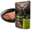 La mezcla de paté suave con fibras de carne desmenuzada hace que LEONARDO Turkey + extra Pulled Beef no solo sea delicioso, sino también funcional. Estimula el comportamiento natural de masticación del felino, lo que enriquece su experiencia durante la comida y reduce la monotonía alimentaria. Ofrecer diferentes texturas en un mismo plato mantiene el interés del gato y lo anima a comer con más apetito.