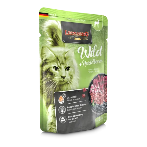 LEONARDO Venado + Arándanos es ideal para gatos de interior y exterior, felinos activos y animales con tendencia a la sensibilidad alimentaria.