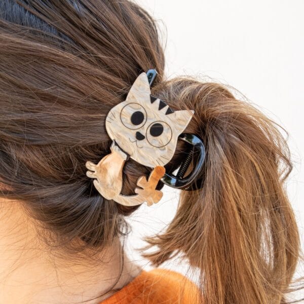 El gato se presenta con un estilo adorable que lo convierte en el protagonista del accesorio. Su tamaño y su acabado hacen que destaque sin resultar exagerado, aportando un toque visual encantador que transforma cualquier peinado en algo especial.